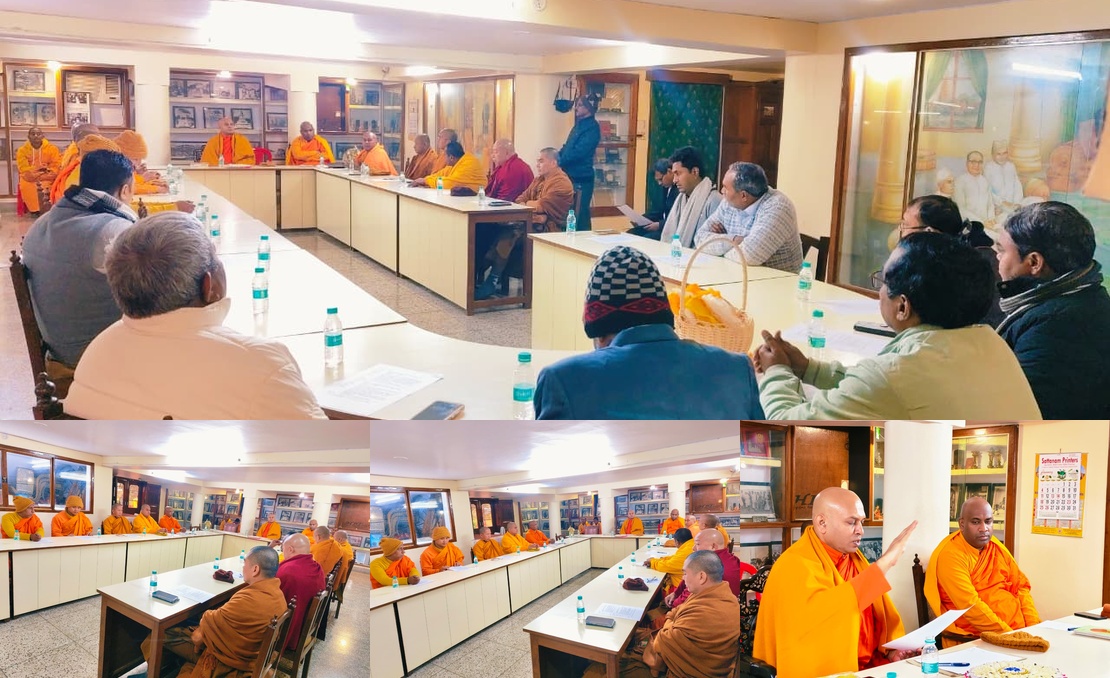 General Secretary – Maha Bodhi Society of India Ven. P. Seewalee Thera chaired a meeting of High Priests/Head Monks/Bhikkhu-in-Charges/Managers/Heads of Sarnath Monasteries and Devotees of Buddhist Organization and Societies of U.P. on 4th January 2026 at 3:00 p.m. at the MBSI Center at Sarnath, Varanasi to discuss arrangements for the Dhammachakka Puja Sarnath – 2026 which is to be scheduled from 15 – 21 January, 2026 at Sarnath.