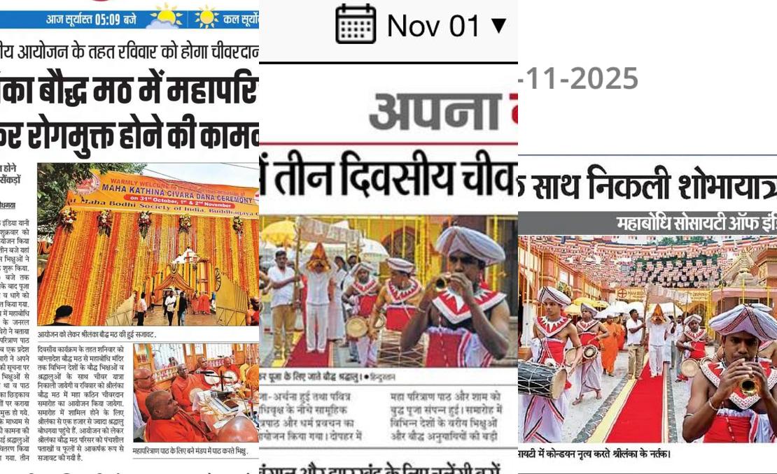 महाबोधि सोसाइटी ऑफ इंडिया बुद्ध गया सेंटर ने महाप्रजापति गौतमी सुभारती स्कूल ऑफ बुद्धिस्ट स्टडीज देहरादून रास बिहारी सुभारती यूनिवर्सिटी देहरादून के साथ मिलकर म्यांमार के वैश्विक साझेदारों के साथ 'बोधगया और बौद्ध धर्म की वैश्विक विरासत' पर एक सेमिनार आयोजित किया; 21 सितंबर, 2025 को बुद्ध गया केंद्र में 'इतिहास, विरासत और समकालीन प्रासंगिकता' पर एक व्याख्यान।